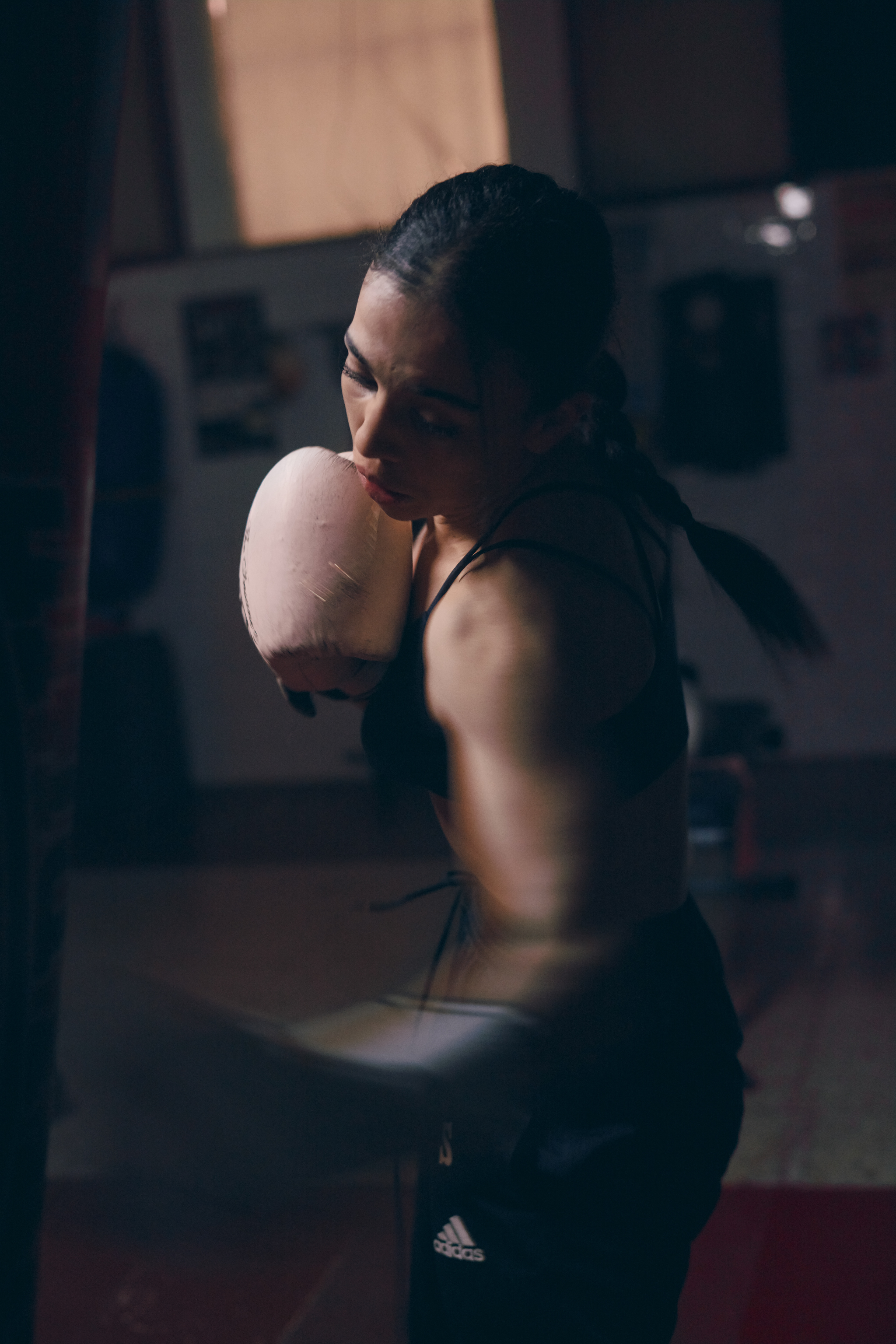 Sesión de entrenamiento para su marca personal como boxeadora. Oma es campeona de la Comunidad Valenciana en -54kg y una de las futuras promesas del boxeo alicantino en amateur y profesional.